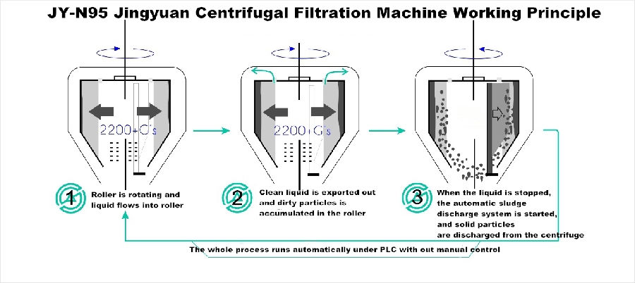 JY-N95 Centrifugal Filtration Machine can extract particles from any liquid automatically, with a processing rate range of 95~120L/min.